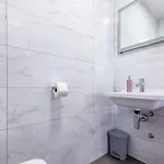 Az Ag Apartment With Balcony And Garage fürdőszobája hajszárítóval és törölközőkkel felszerelt. Továbbá külön WC szintén elérhető.